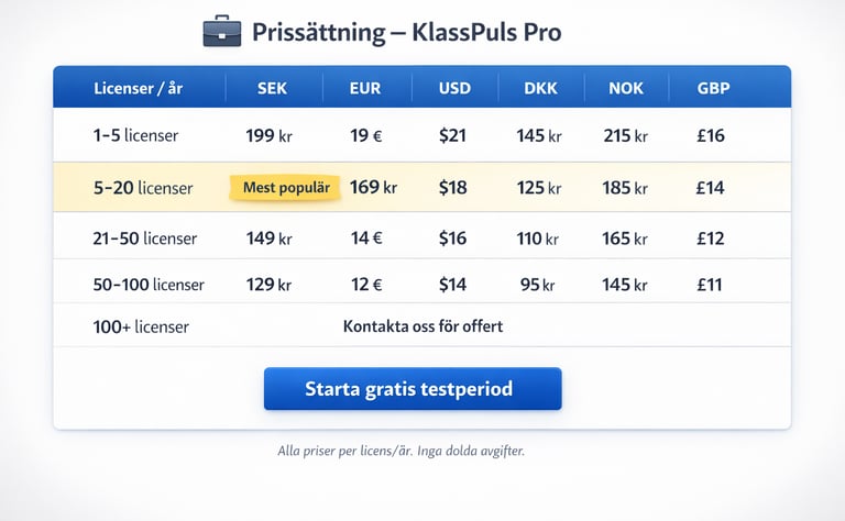 Priser anges exklusive moms. Fakturaavgift kan tillkomma.